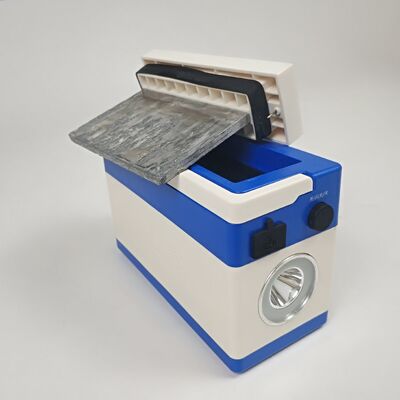 수명이 긴 그래핀 공기극과 순도 99%의 양극판을 채택해 자체 개발한 알루미늄 공기전지 기술로 알루미늄 공기전지를 집적·방전하며, 방전 용량이 크다.그리고 배출 생성물은 수산화알루미늄으로 무독성이며 무해하며 직접 배출이 가능하고 안전하고 환경 친화적입니다.