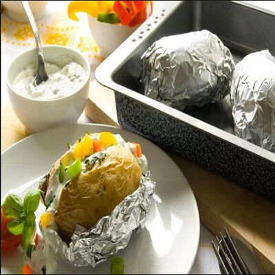 알루미늄 호일은 컨벡션 오븐이나 가장 뜨거운 그릴 아래에서 요리할 때 발생하는 가장 높은 온도를 처리할 수 있습니다.주방에서 사용할 때의 또 다른 큰 장점은 알루미늄 호일의 '데드폴드' 특성입니다.고기의 이음매 주위를 접거나 캐서롤 또는 저장 냄비의 상단에 구겨지면 알루미늄 호일이 접힌 상태로 유지되고 튀어 나오지 않습니다.